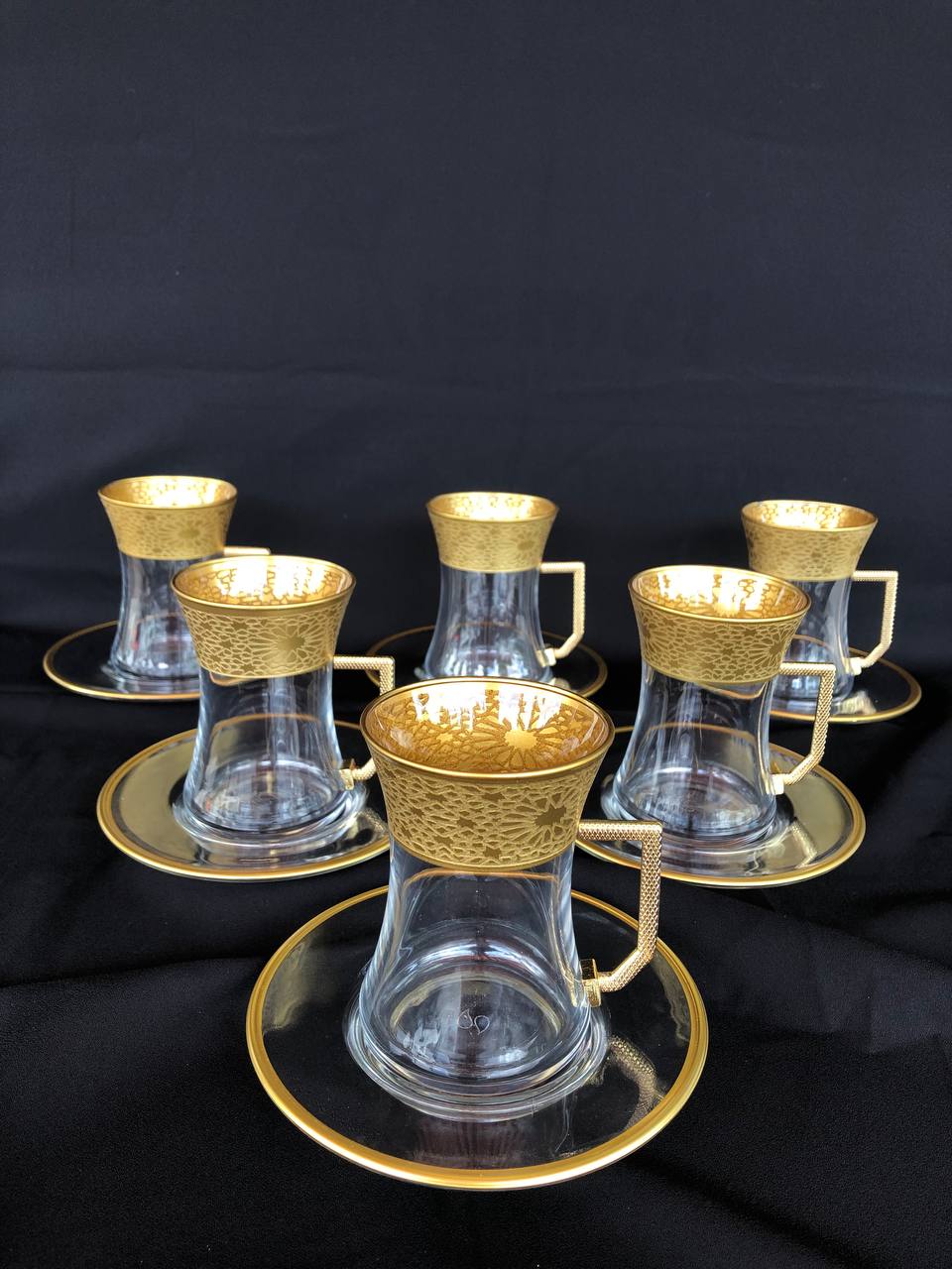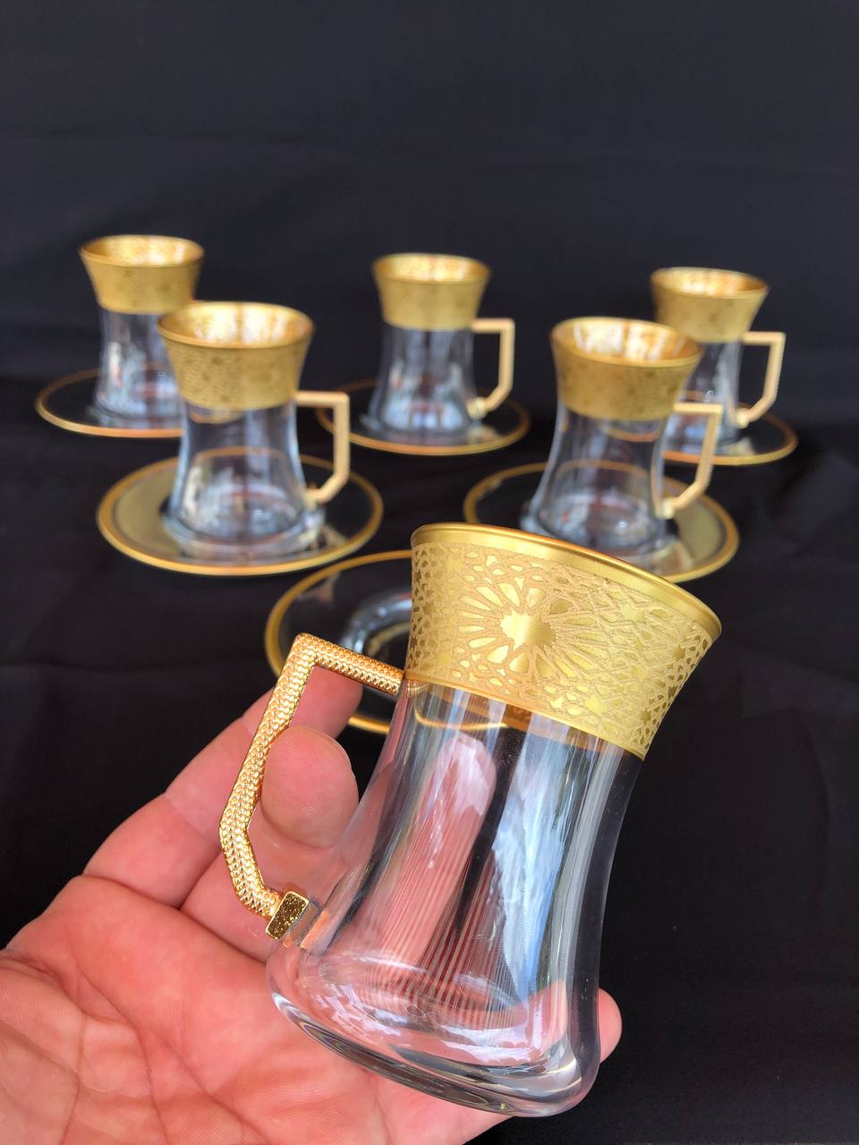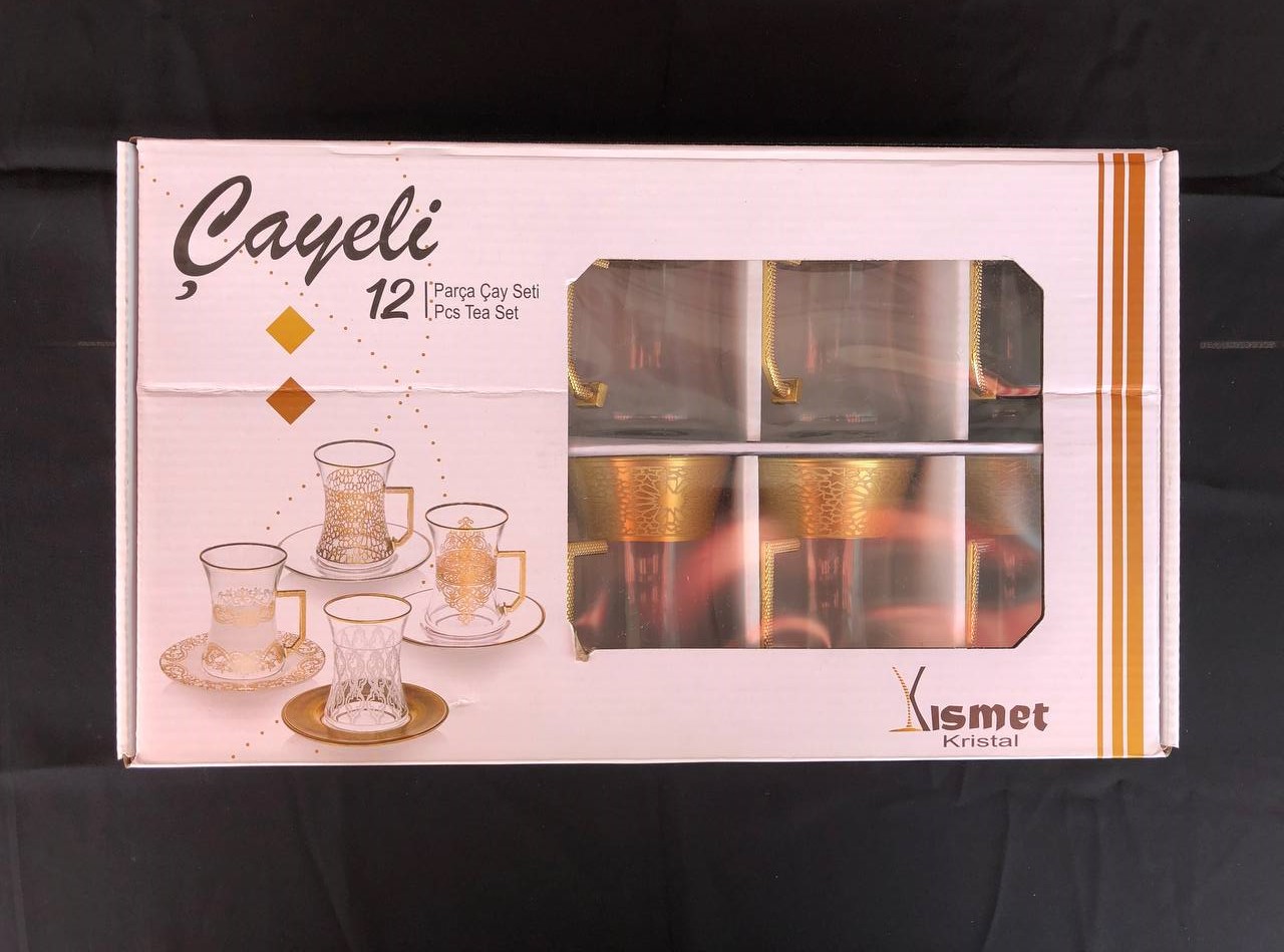 12 PARÇA ÇAYELİ ÇAY SETİ GRAVÜR AĞIZ KAPLAMA SELÇUKLU