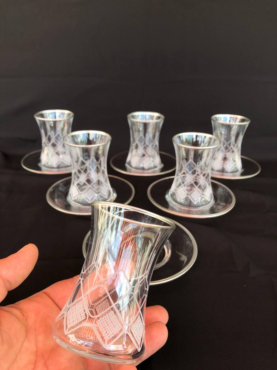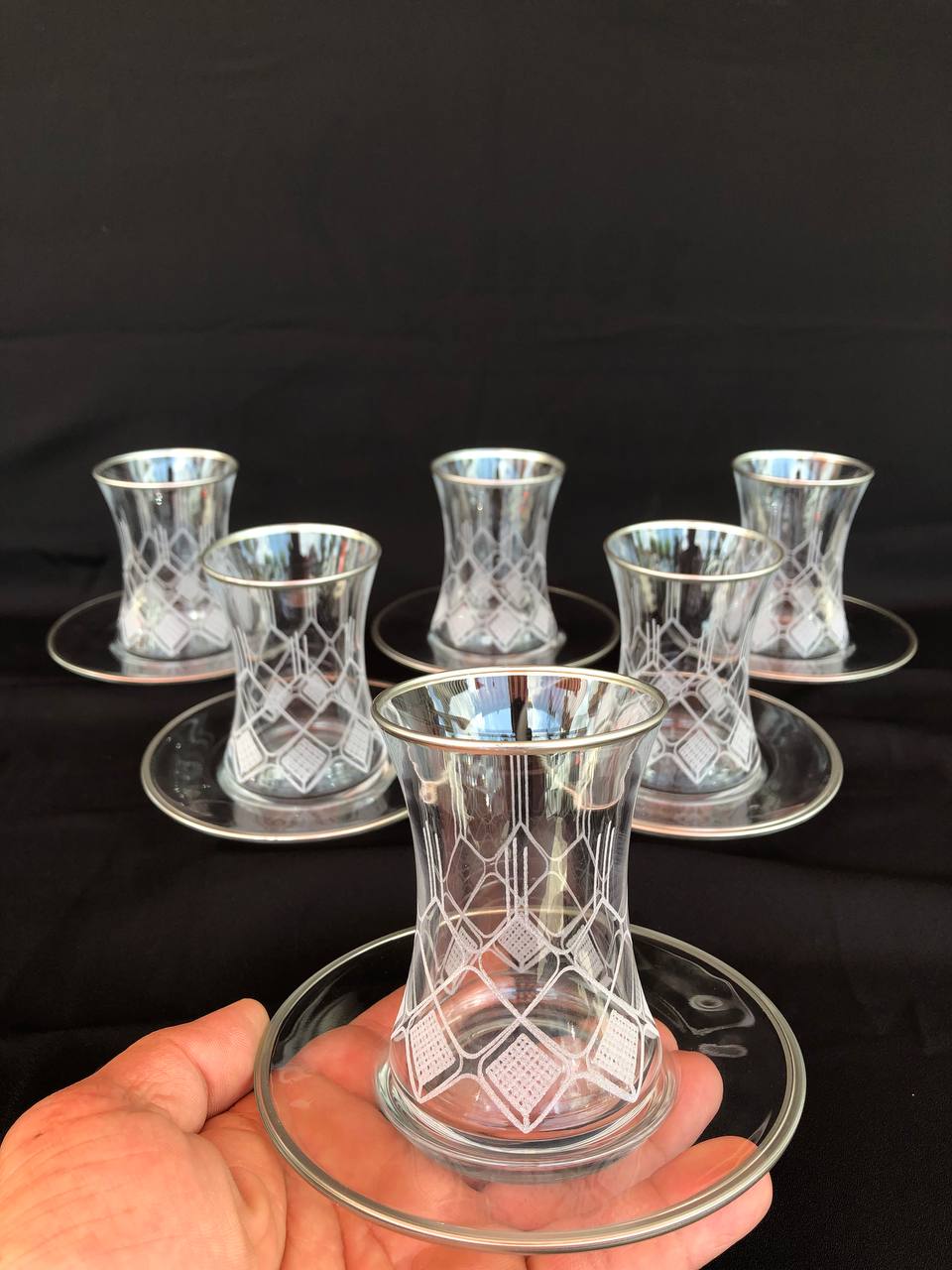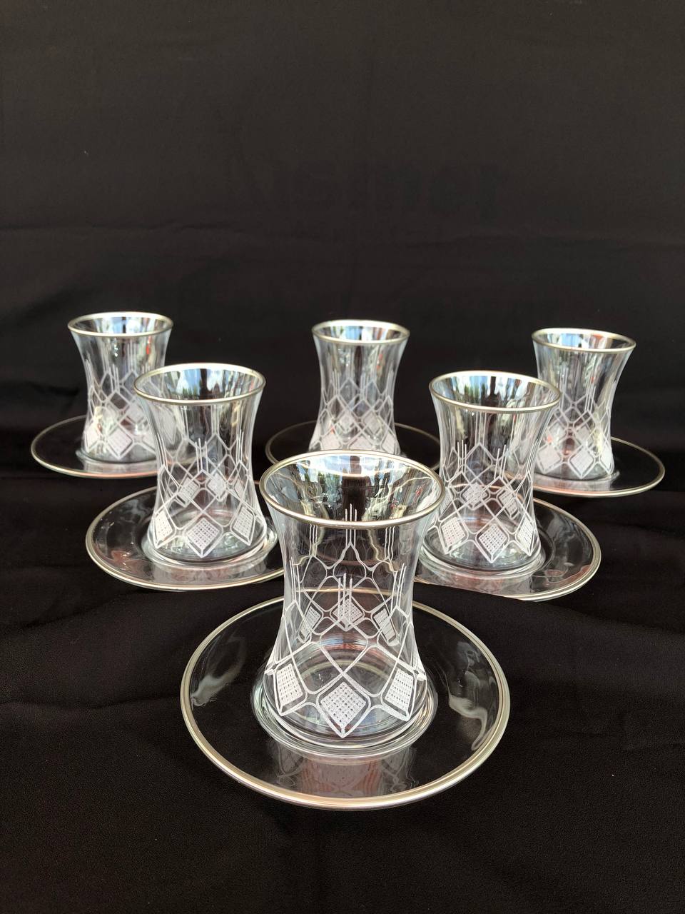 12 PARÇA ÇAYELİ ÇAY SETİ GRAVÜR GÜMÜŞ FEZA