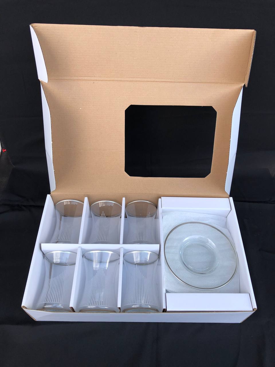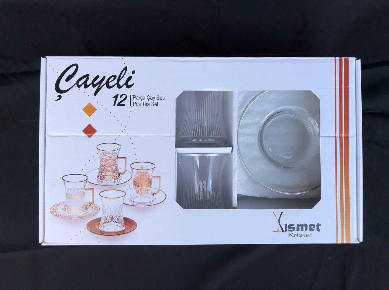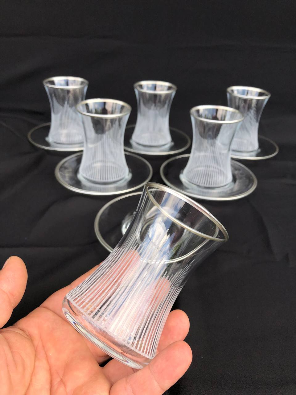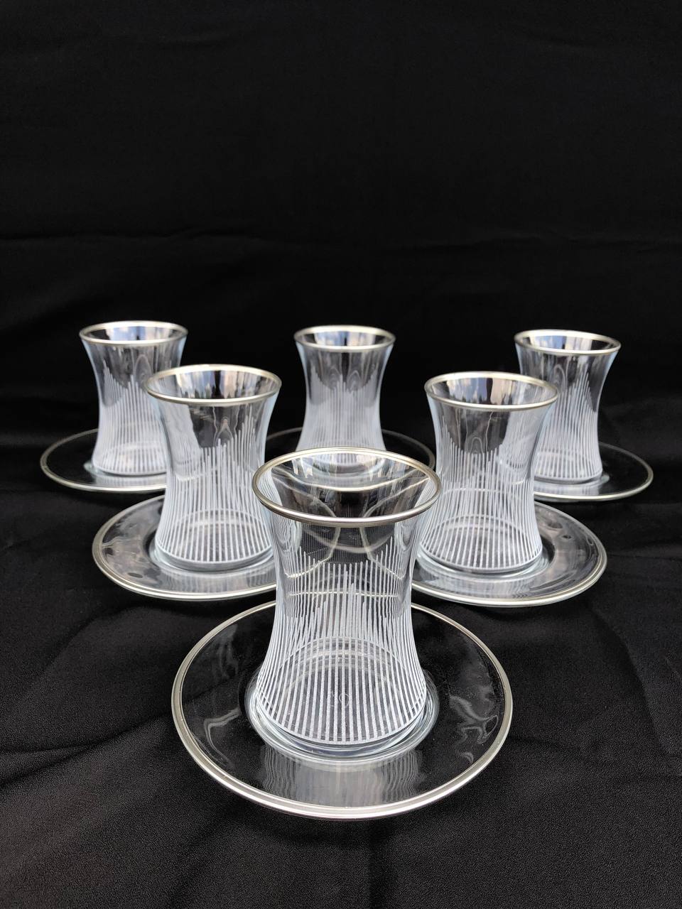 12 PARÇA ÇAYELİ ÇAY SETİ GRAVÜR GÜMÜŞ ÜÇGEN ÇİZGİ