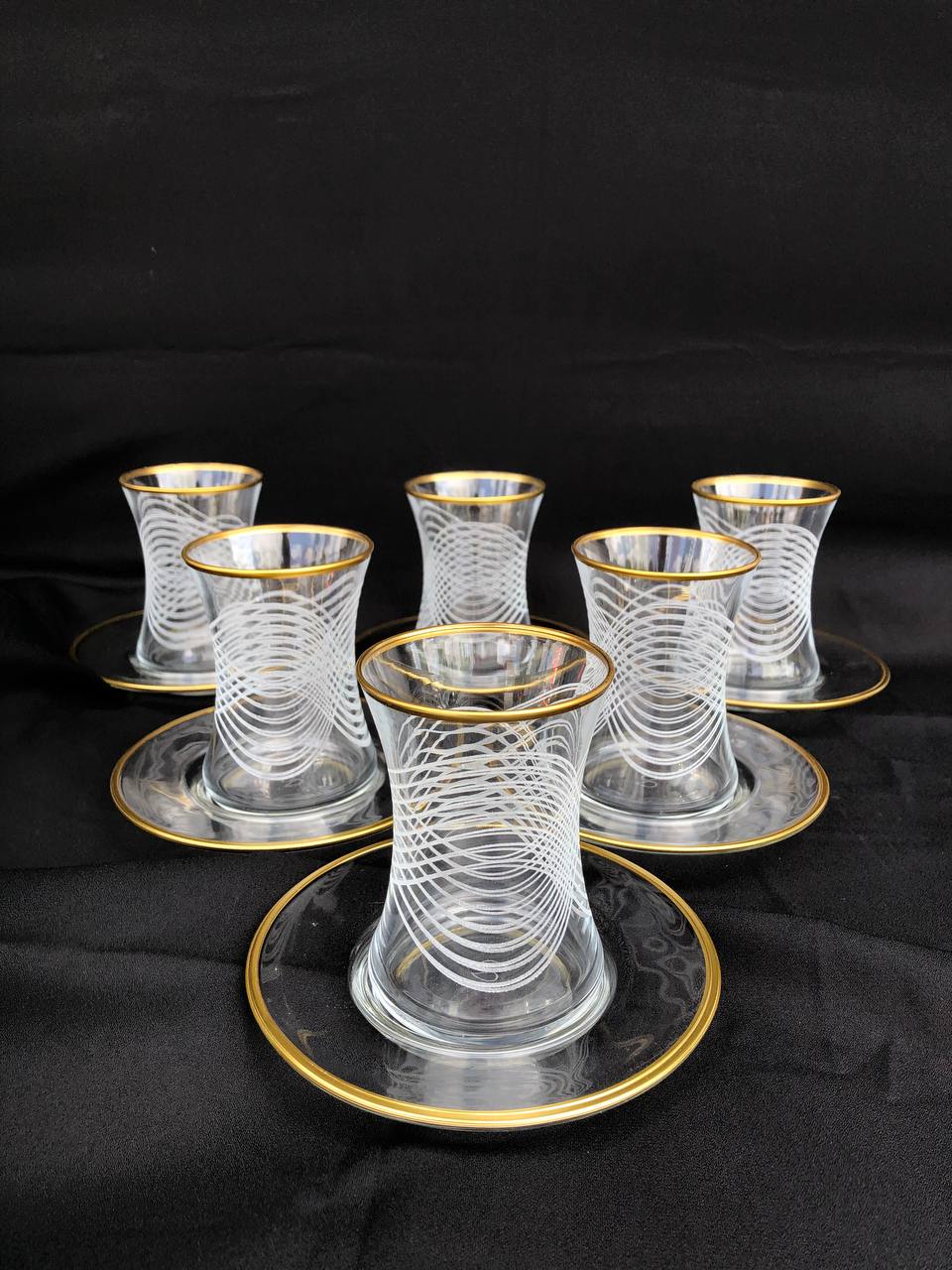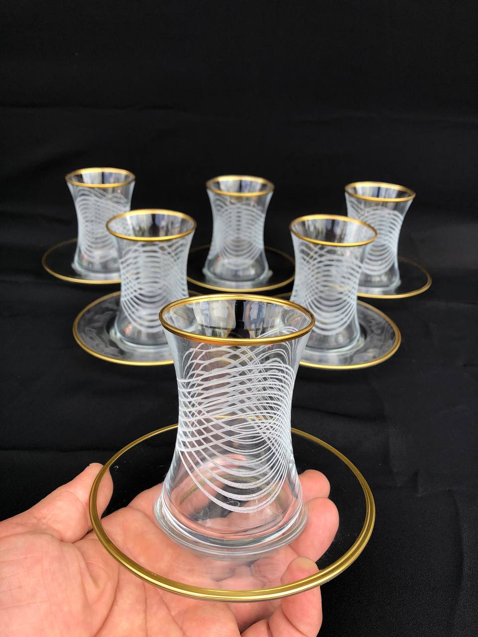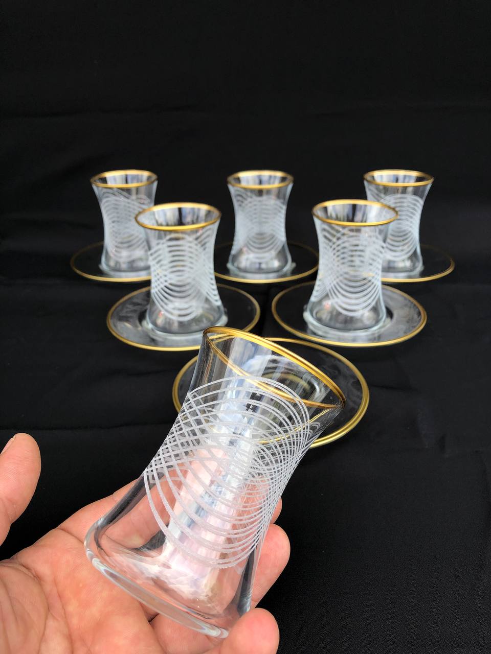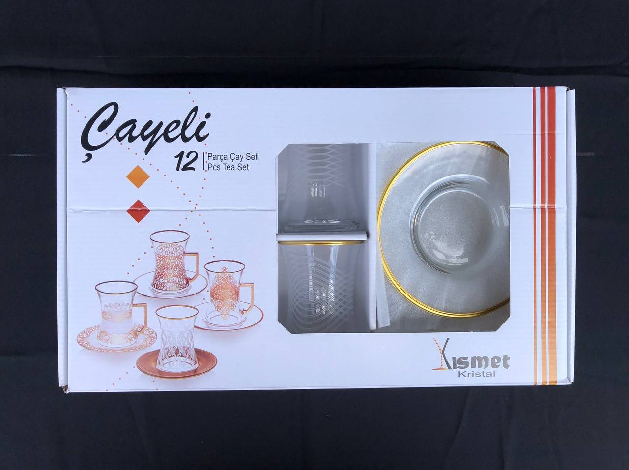 12 PARÇA ÇAYELİ ÇAY SETİ GRAVÜR SARI NEBULA
