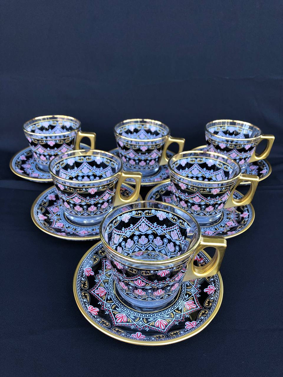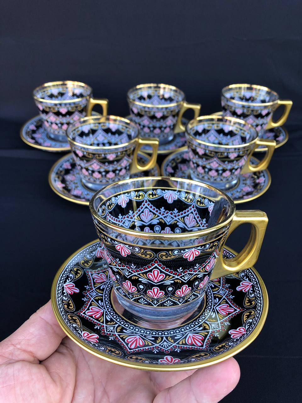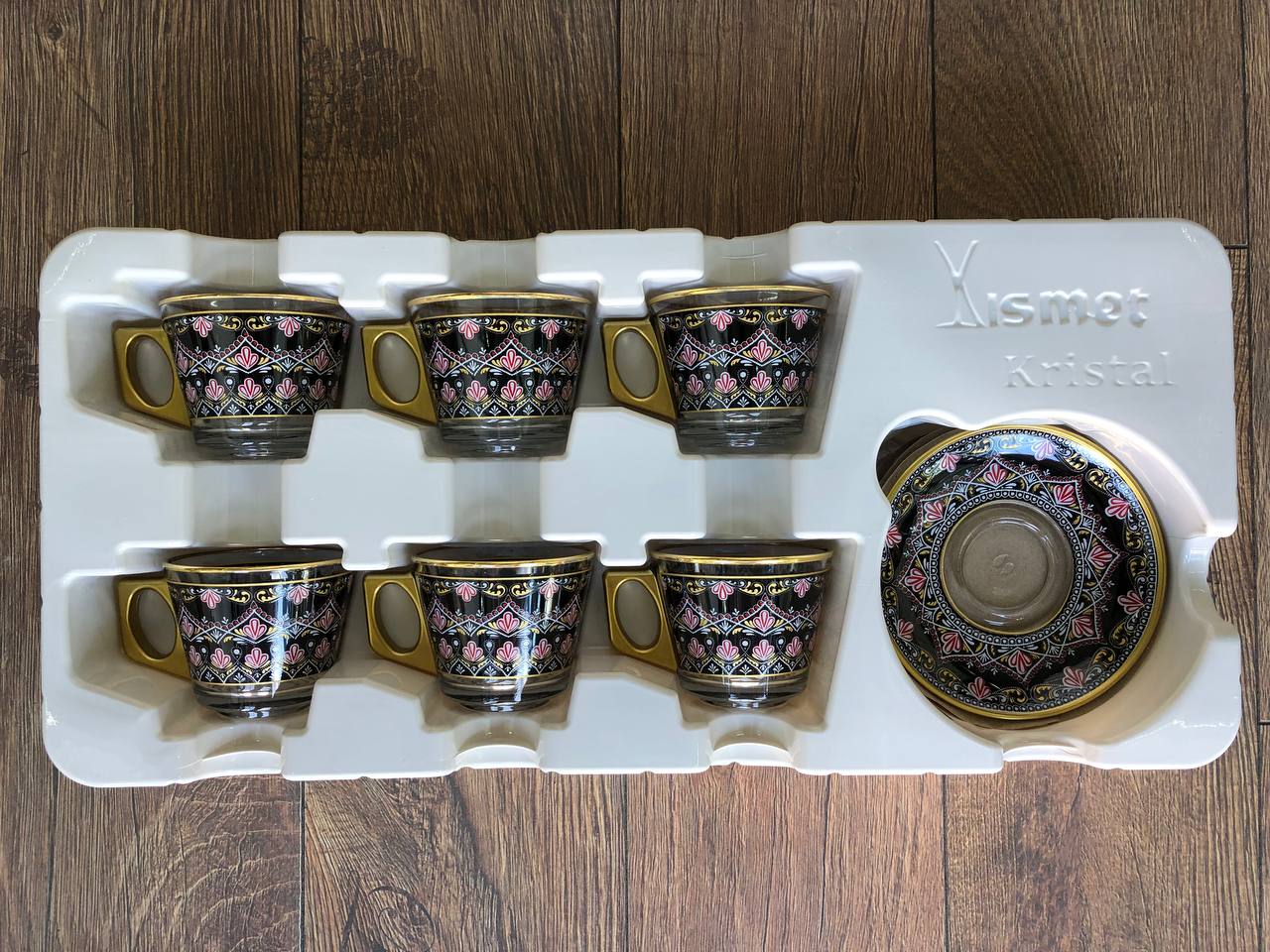 12 PARÇA FİNCAN SETİ -AĞIZ ALTIN SİYAH KİLİM DESEN