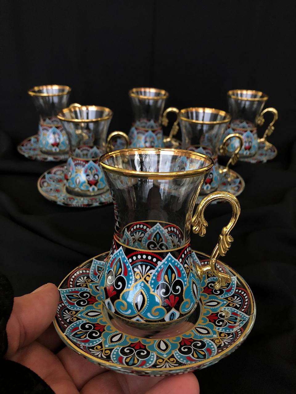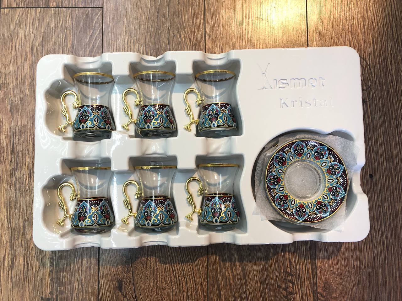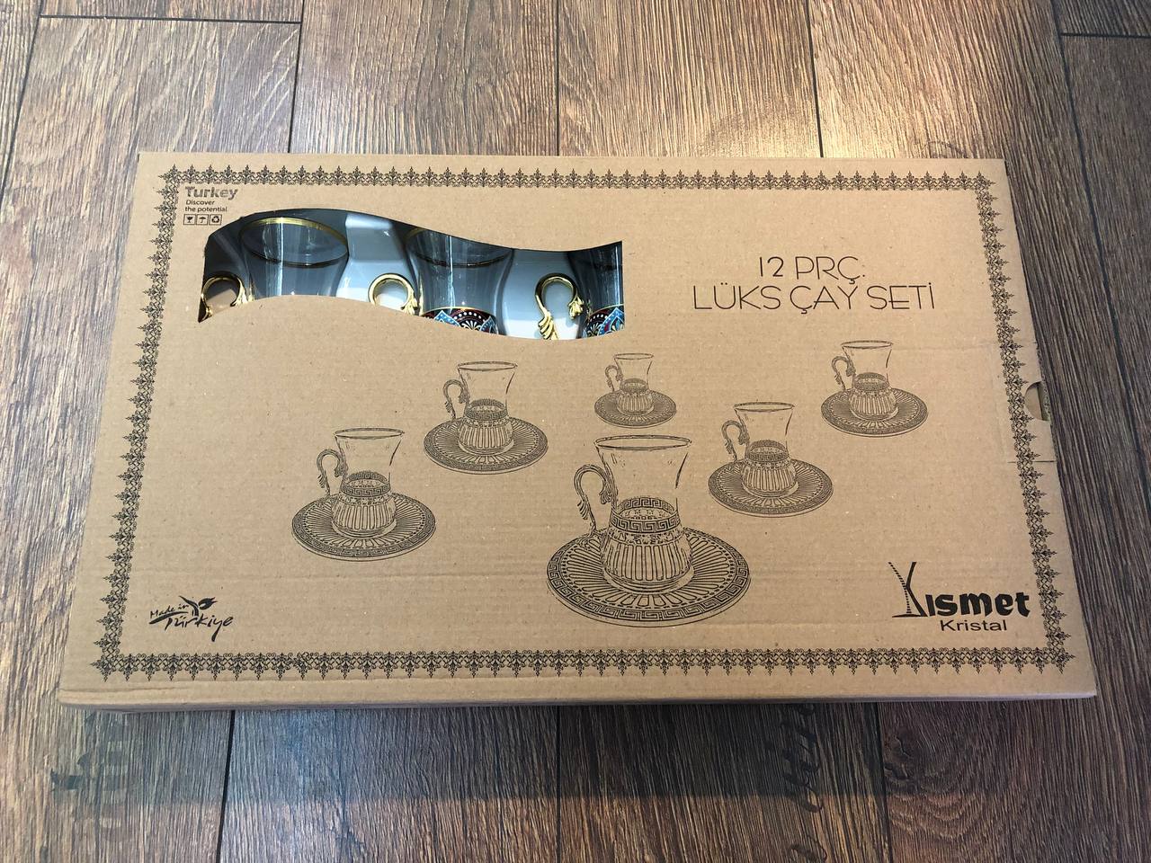 12 Parça İncebelli Çay seti & Ağız Yaldız Mavi Kilim