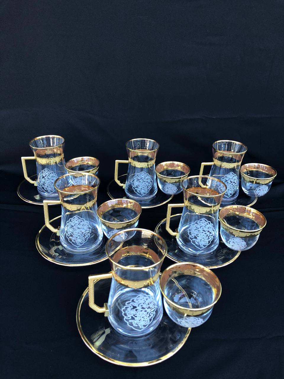 18 Parça Mıralı Duru Çay seti Gravür Altın Bant Sarkıt