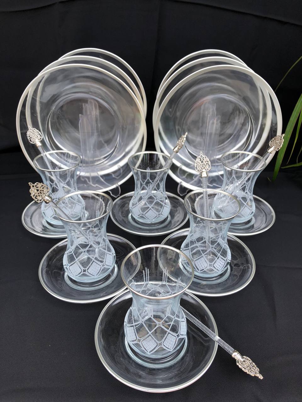 24 PARÇA İKRAM SETİ GRAVÜR GÜMÜŞ FEZA