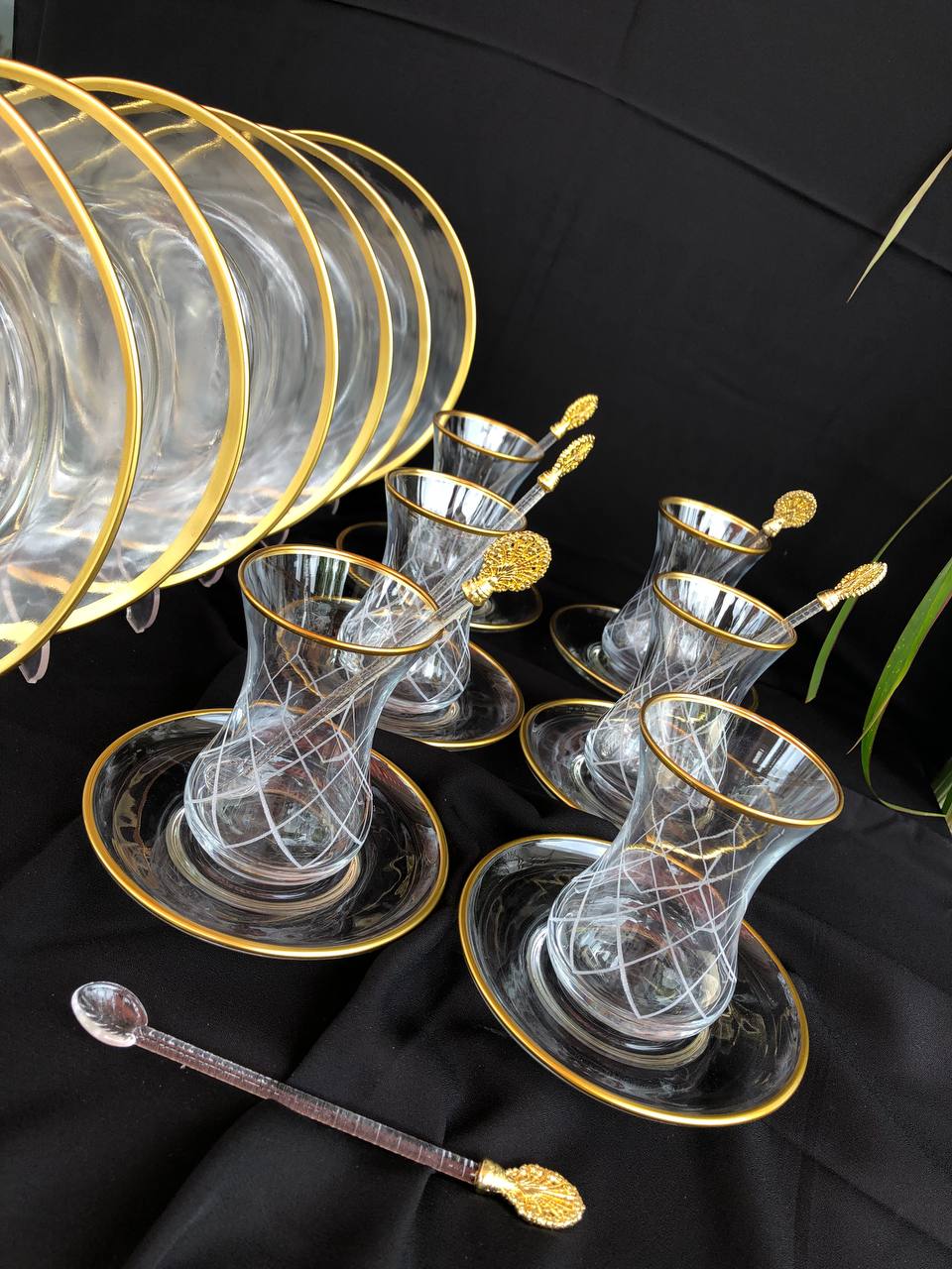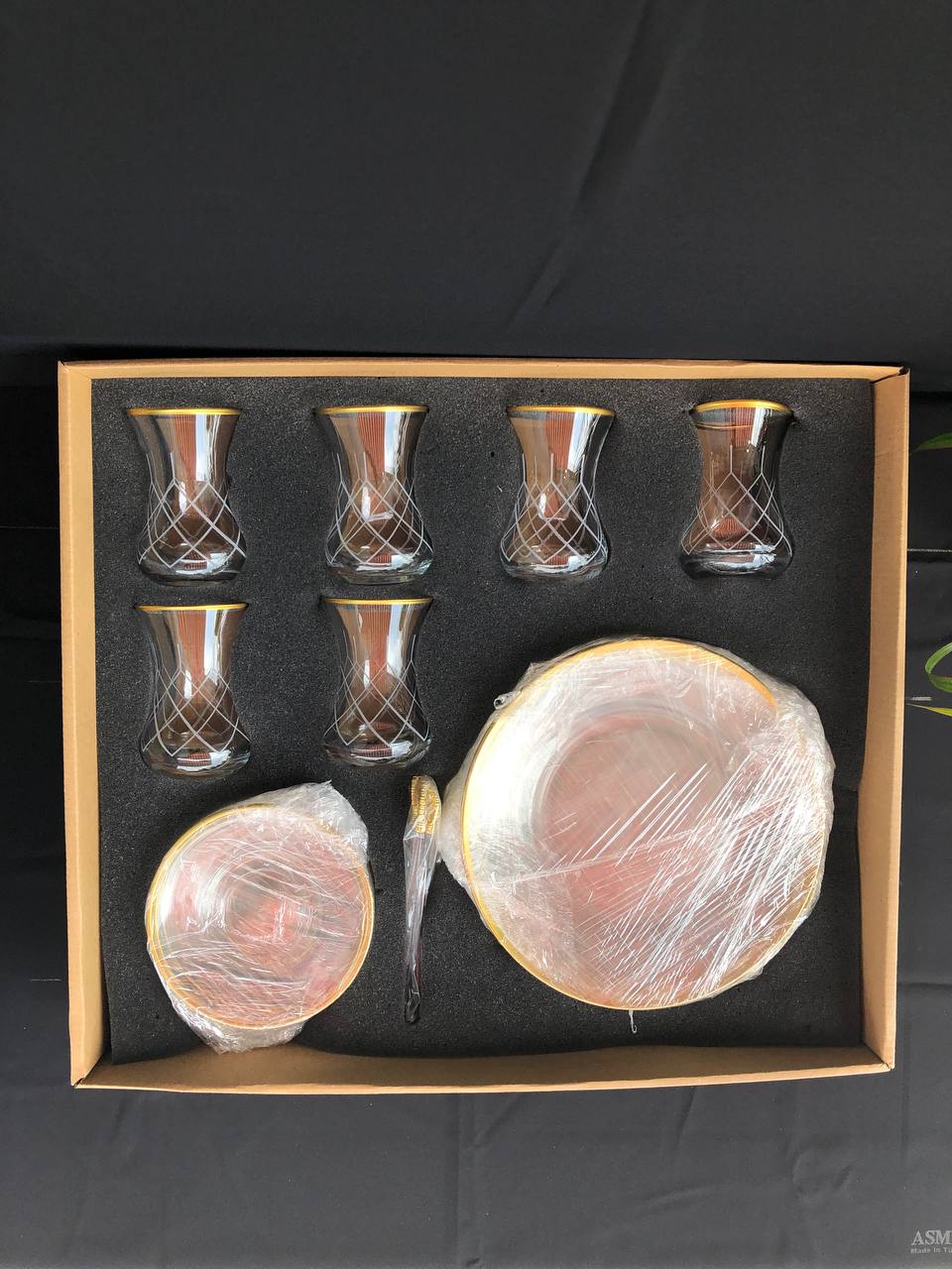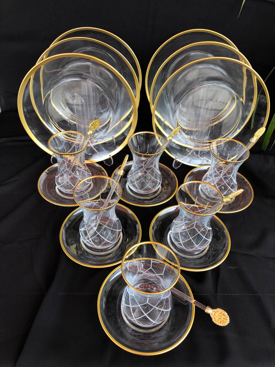 24 PARÇA İKRAM SETİ GRAVÜR SARI KAPİTONE