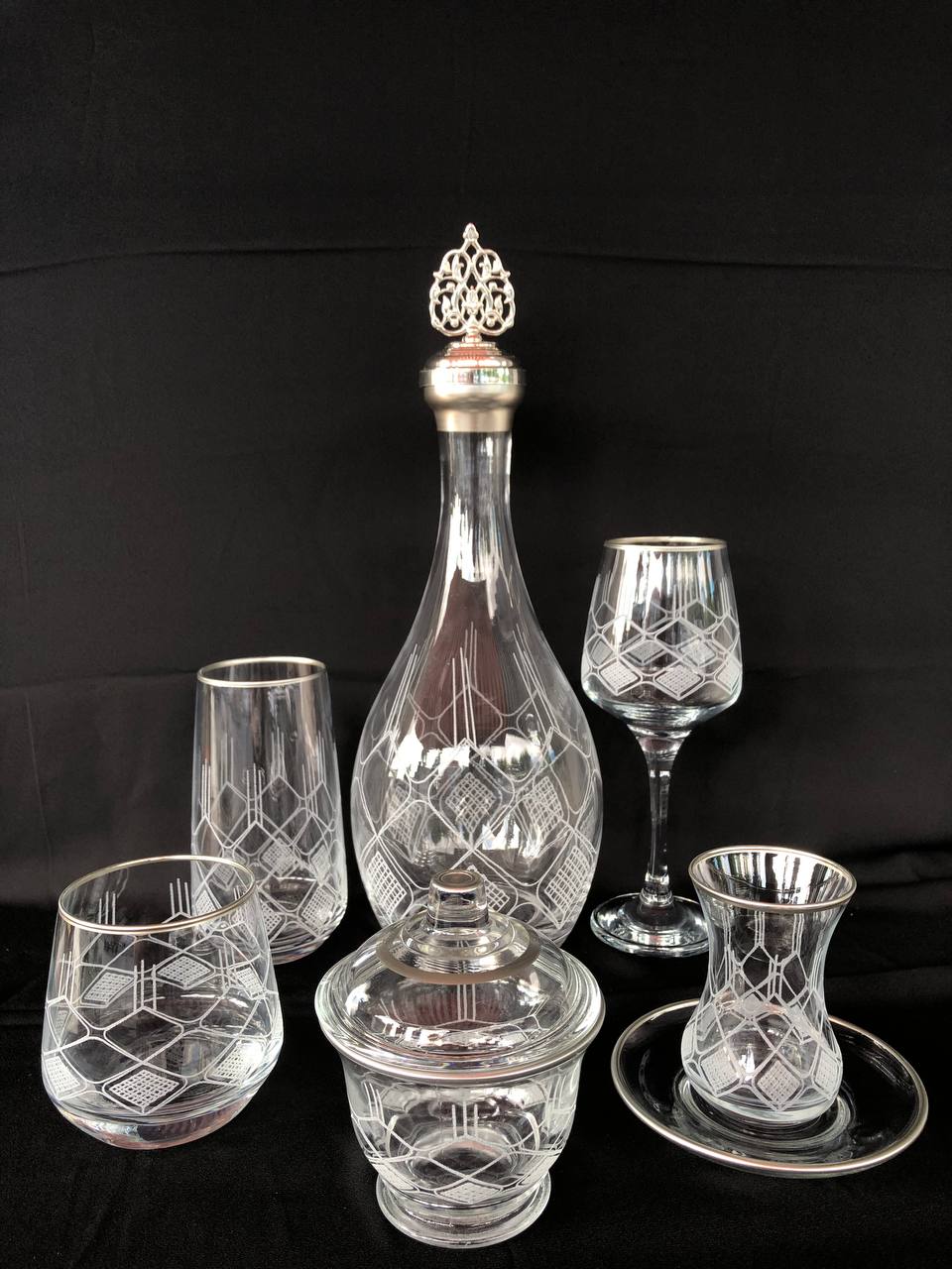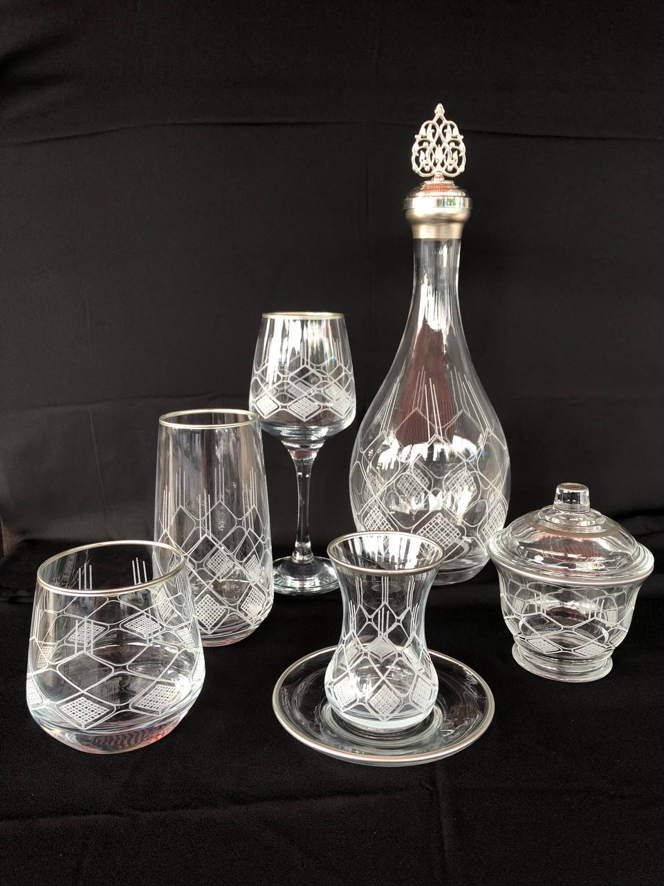 31 Parça Çeyiz seti Gravür Feza Gümüş Ağız Soğuk Boya (+ Şekerlik Hediyeli)