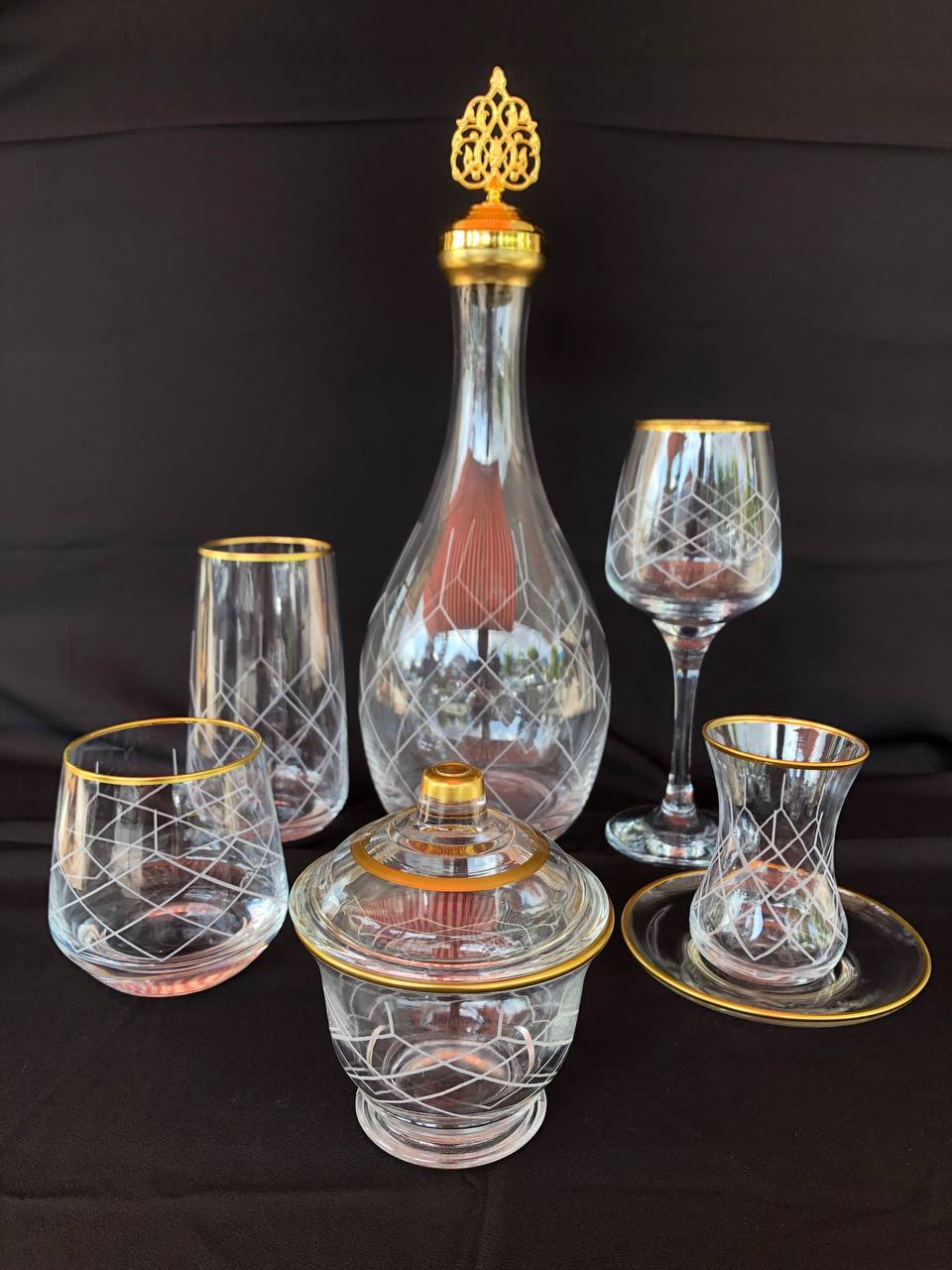 31 Parça Çeyiz seti Gravür Kapitone Sarı Ağız Soğuk Boya (+ Şekerlik Hediyeli)