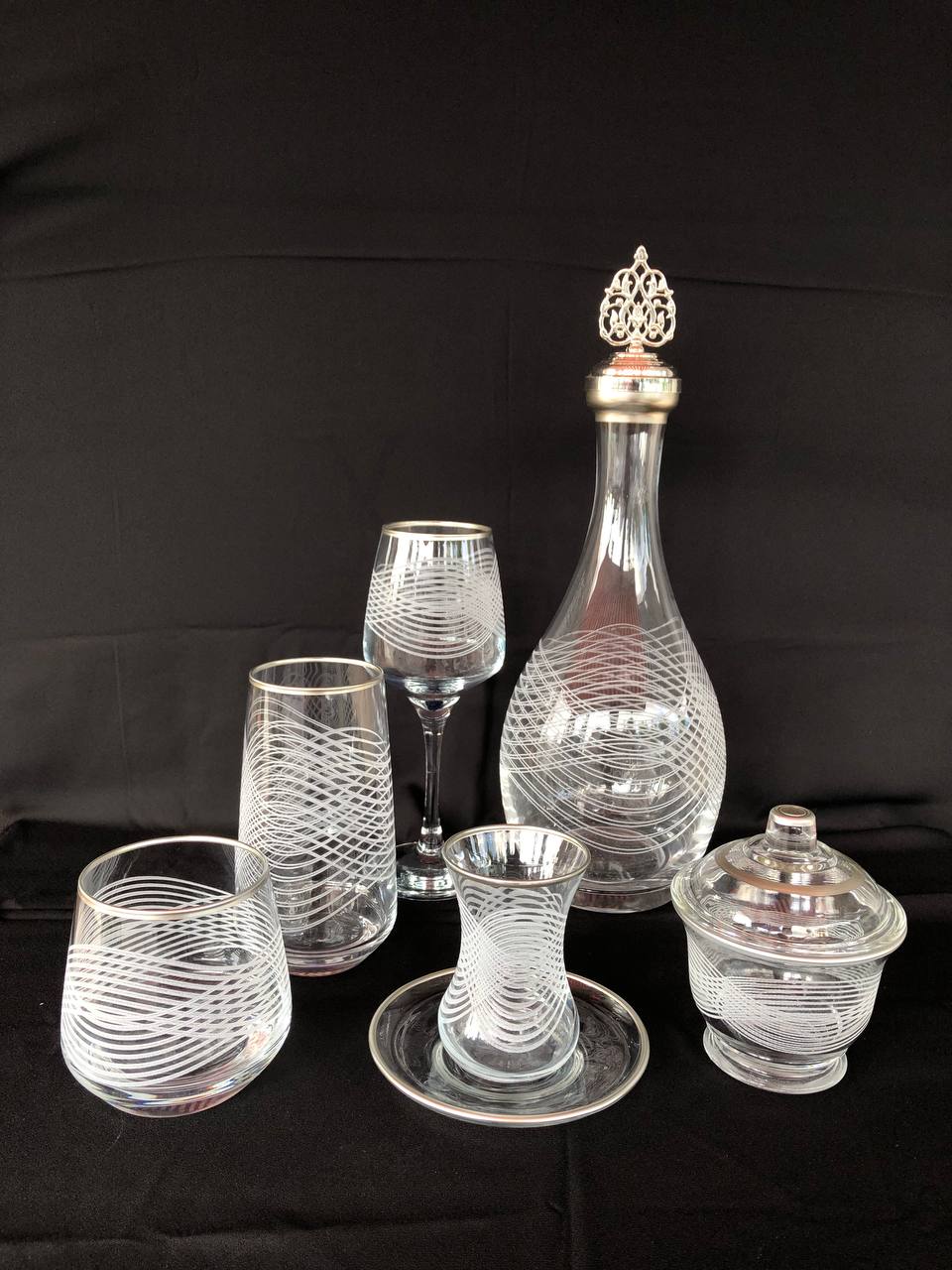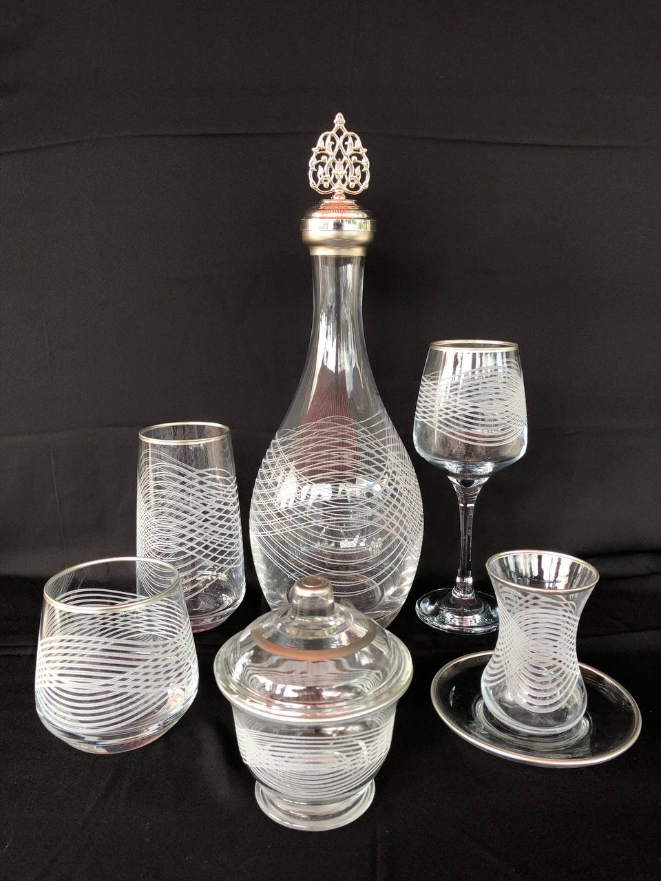 31 Parça Çeyiz seti Gravür Nebula Gümüş Ağız Soğuk Boya (+ Şekerlik Hediyeli)