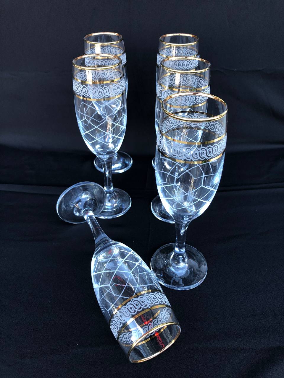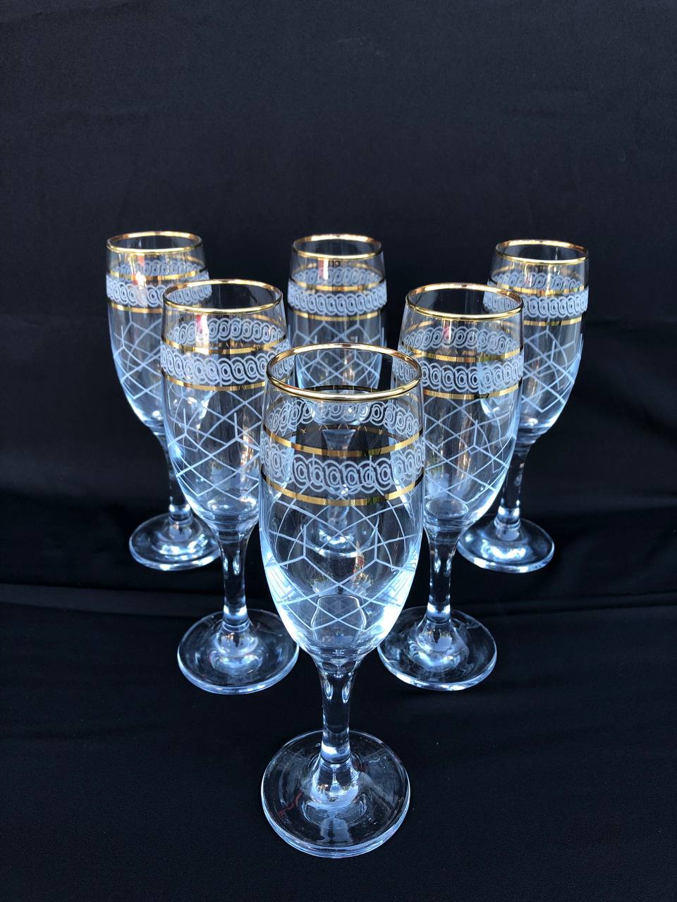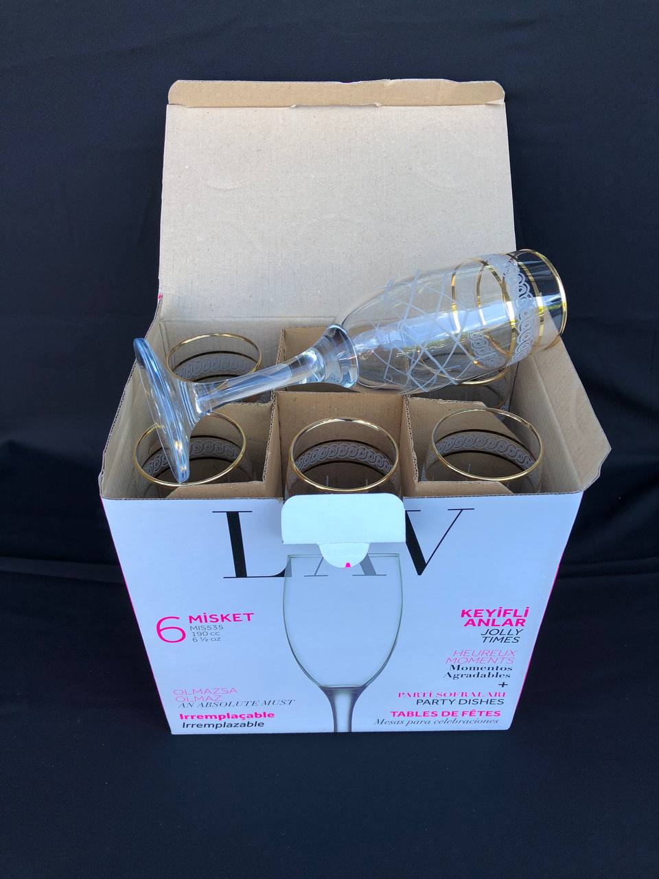 6'LI LAV MİS 535 AYAKLI BARDAK GRAVÜR 3 ÇİZGİ ALTIN KAPİTONE