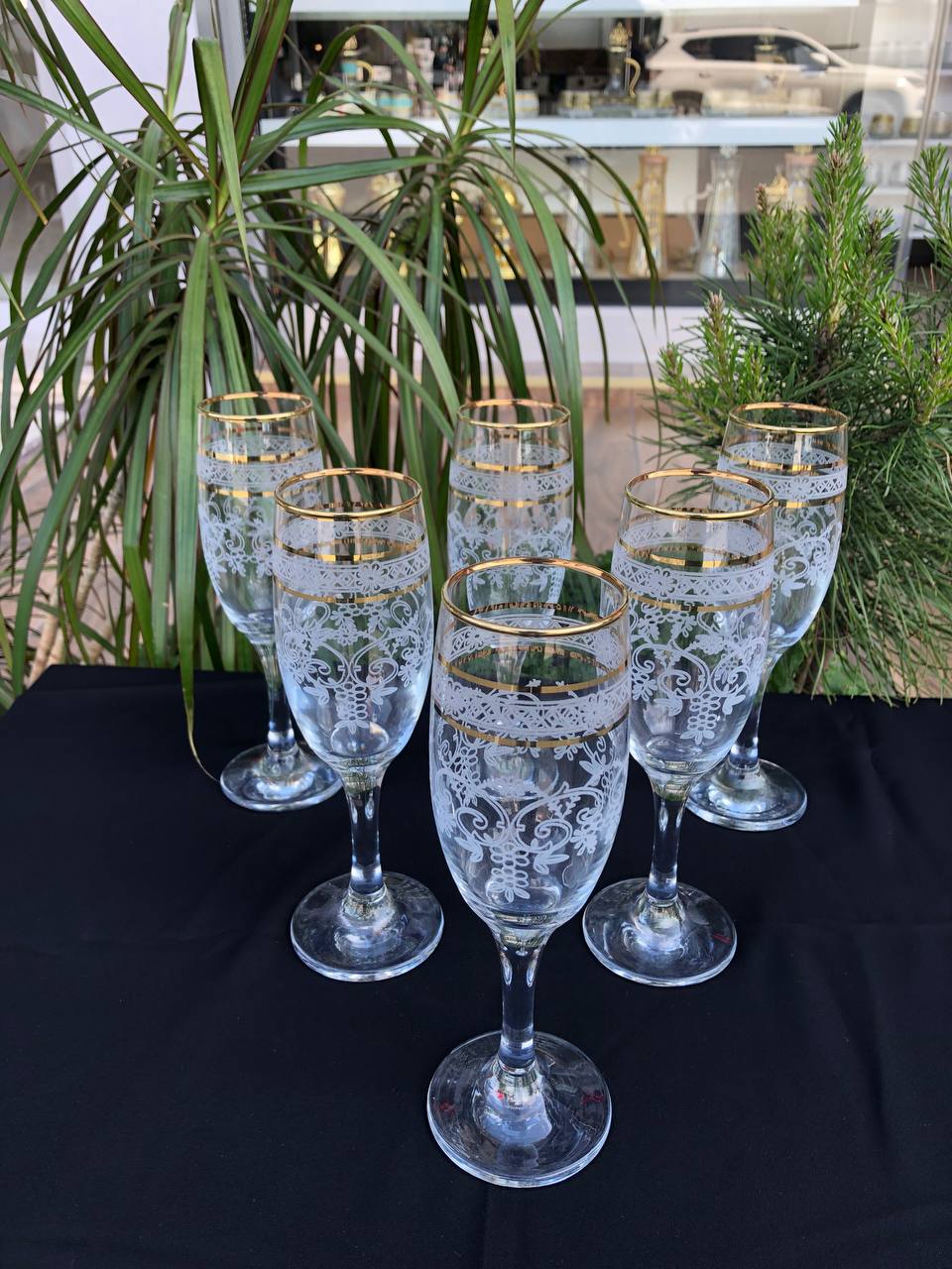 6'LI LAV MİS 535 AYAKLI BARDAK GRAVÜR 3 ÇİZGİ ALTIN SALKIM