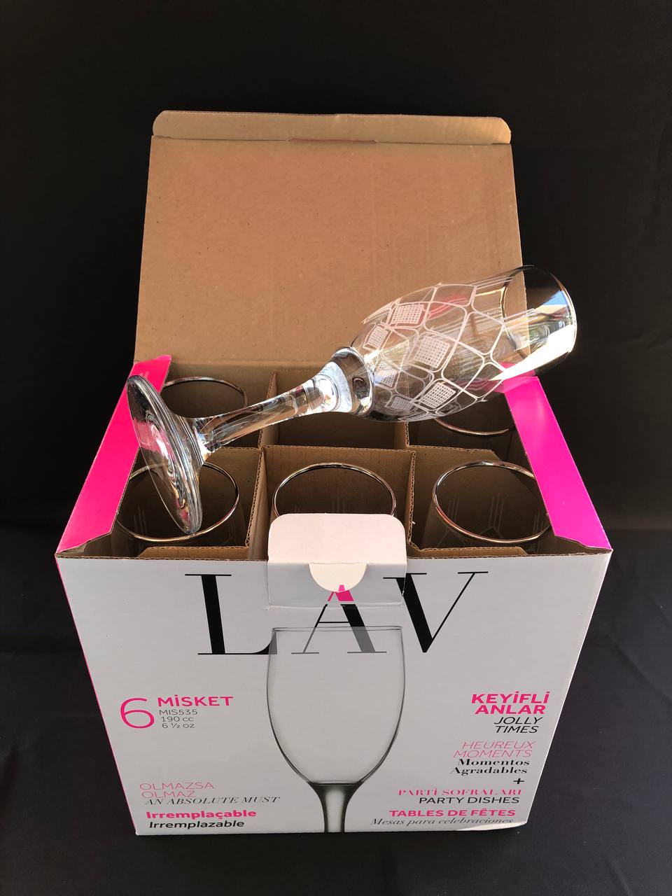 6'LI LAV MİS 535 AYAKLI BARDAK GRAVÜR PLATİN FEZA
