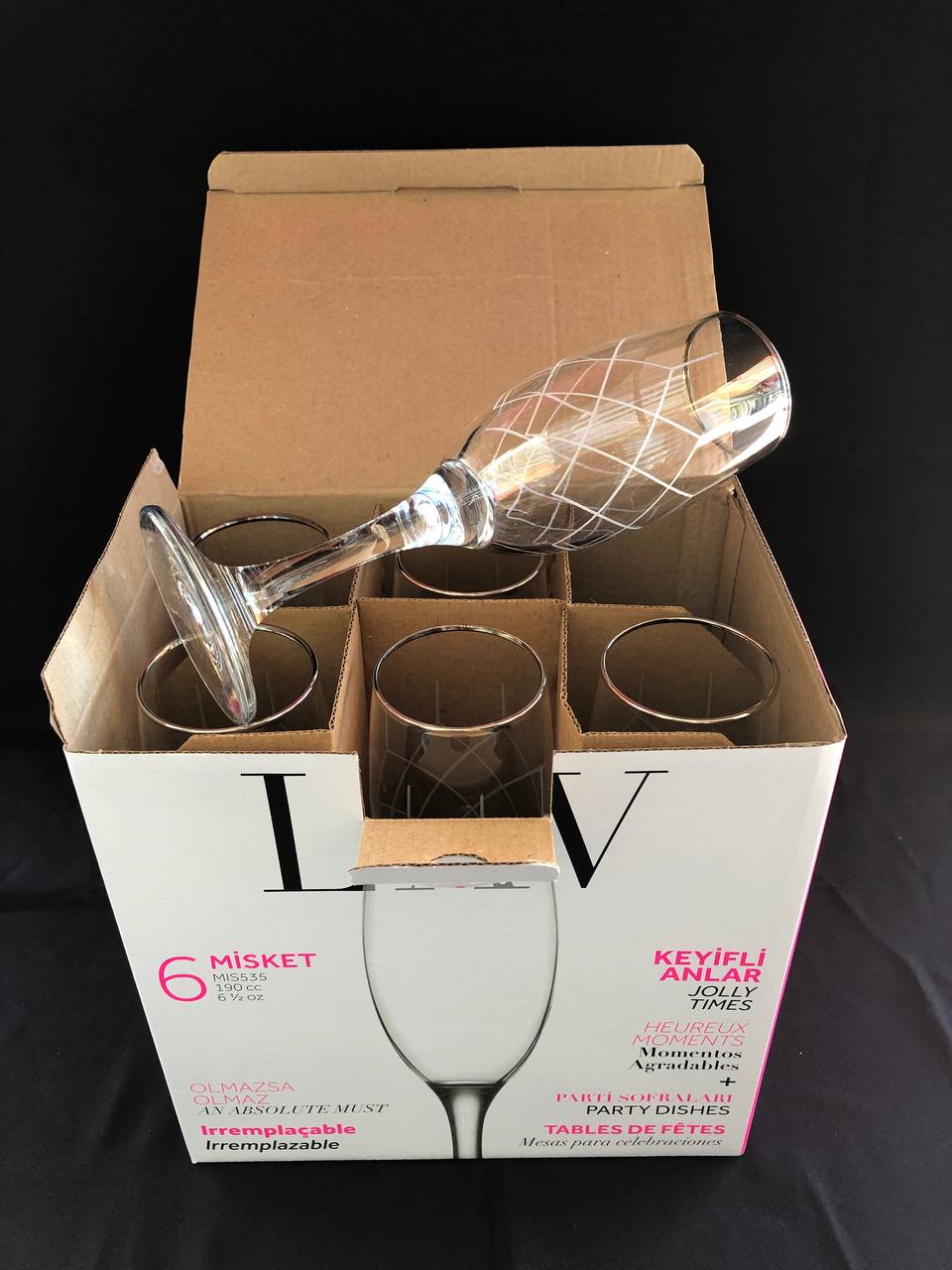 6'LI LAV MİS 535 AYAKLI BARDAK GRAVÜR PLATİN KAPİTONE