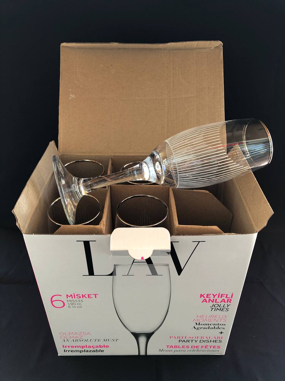 6'LI LAV MİS 535 AYAKLI BARDAK GRAVÜR PLATİN ÜÇGFEN ÇİZGİ