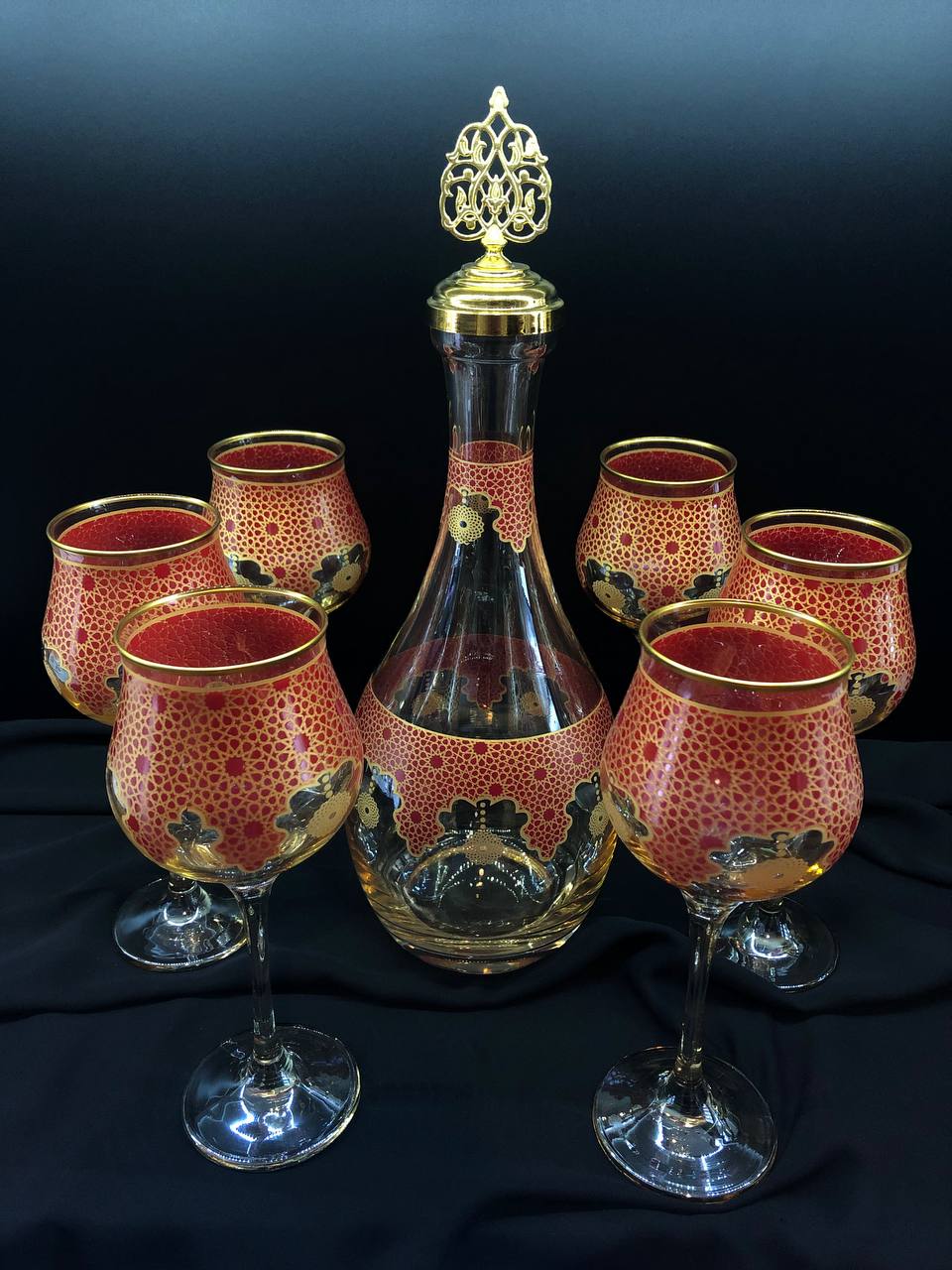 7 Parça Şişe Takımı Bordo Selçuklu Ağız Soğuk Boya