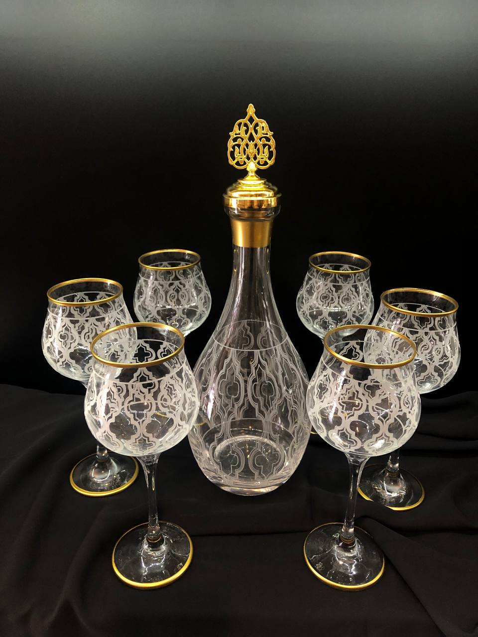 7 Parça Şişe Takımı Gravür Damla Ağız Soğuk Boya
