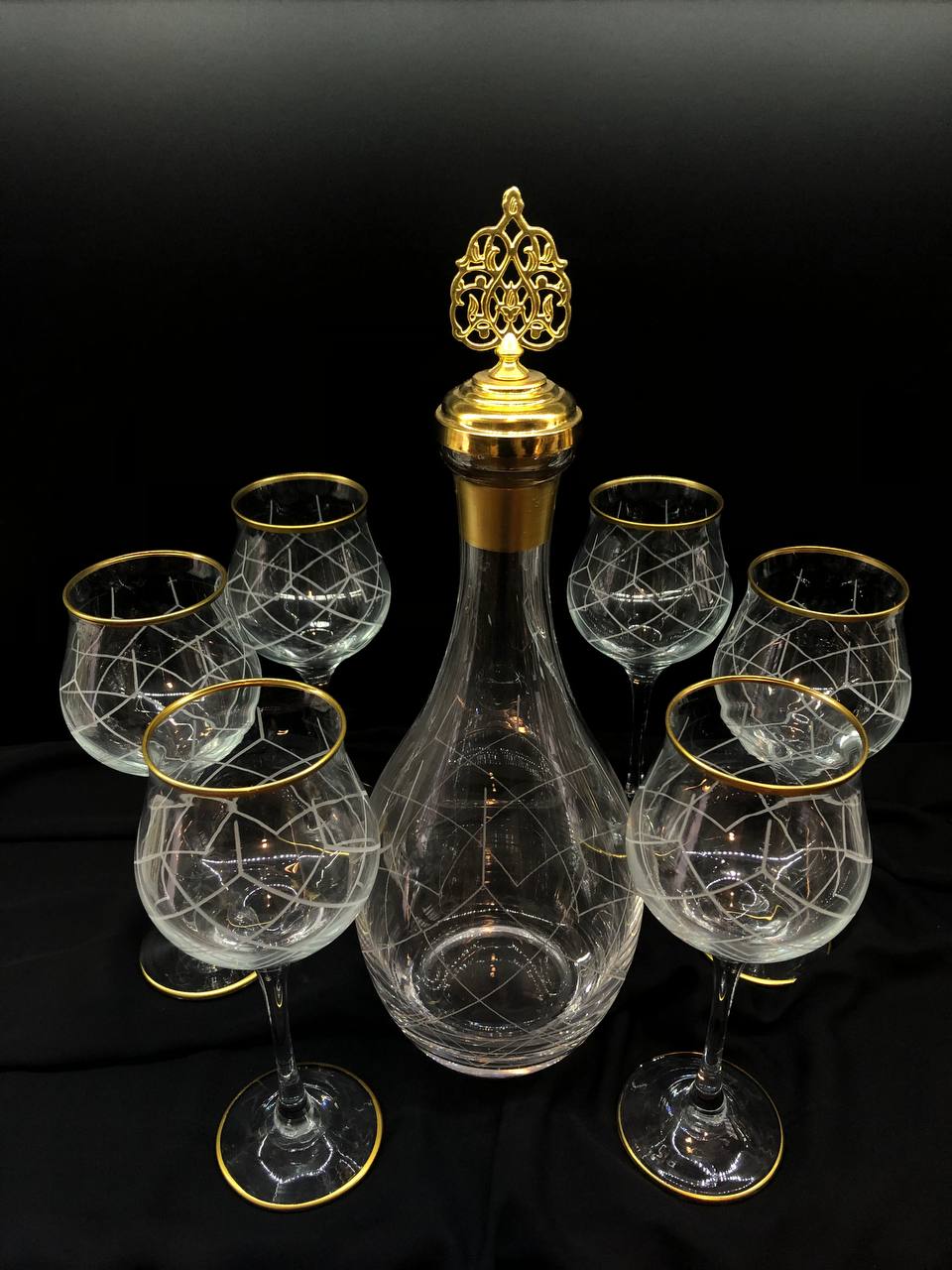 7 Parça Şişe Takımı Gravür Kapitone Ağız Soğuk Boya