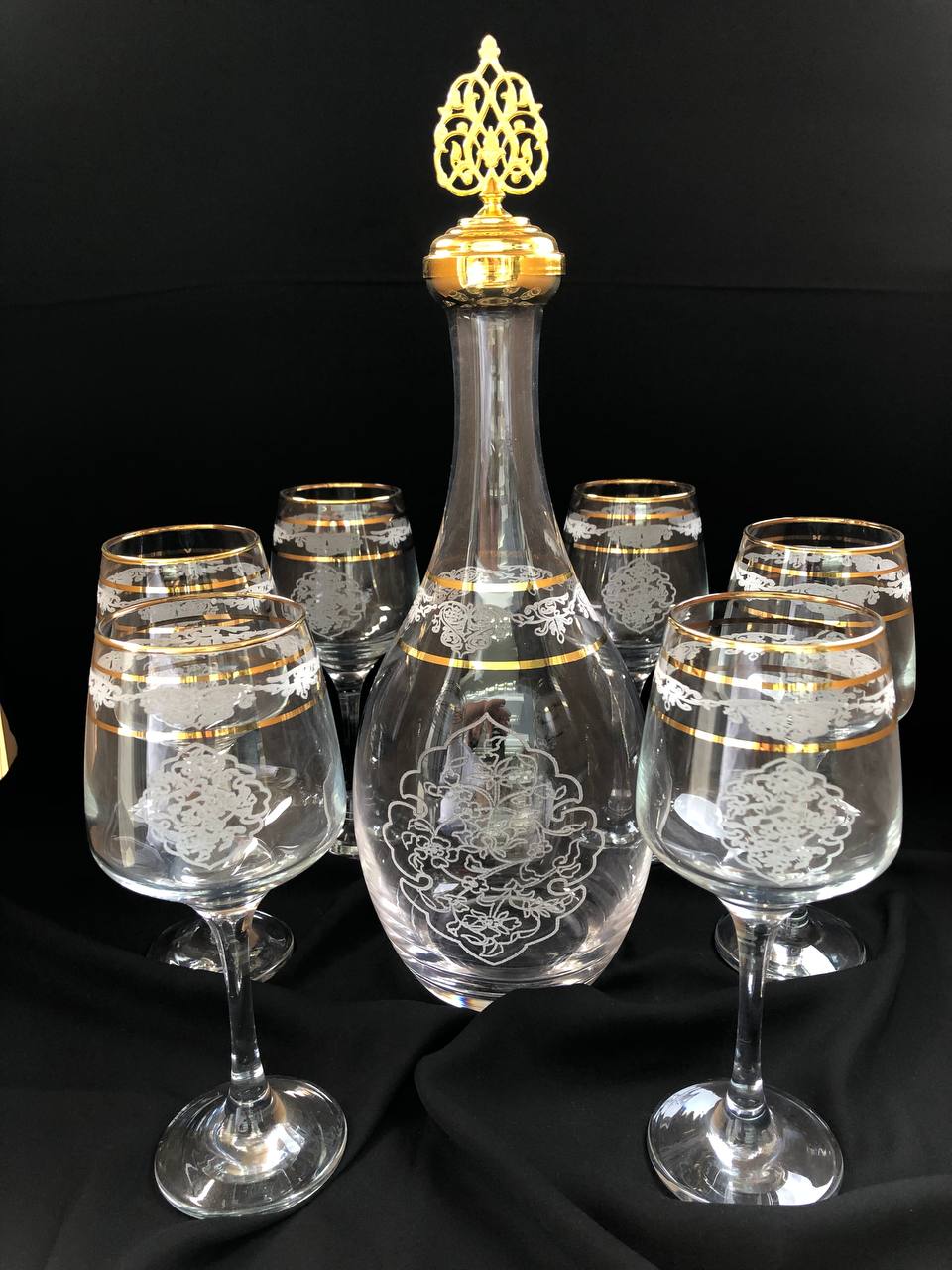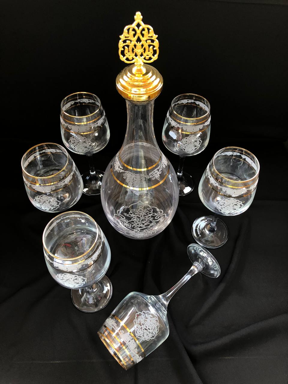 7 Parça Şişe Takımı GravürBant 3 çizgi Sarkıt