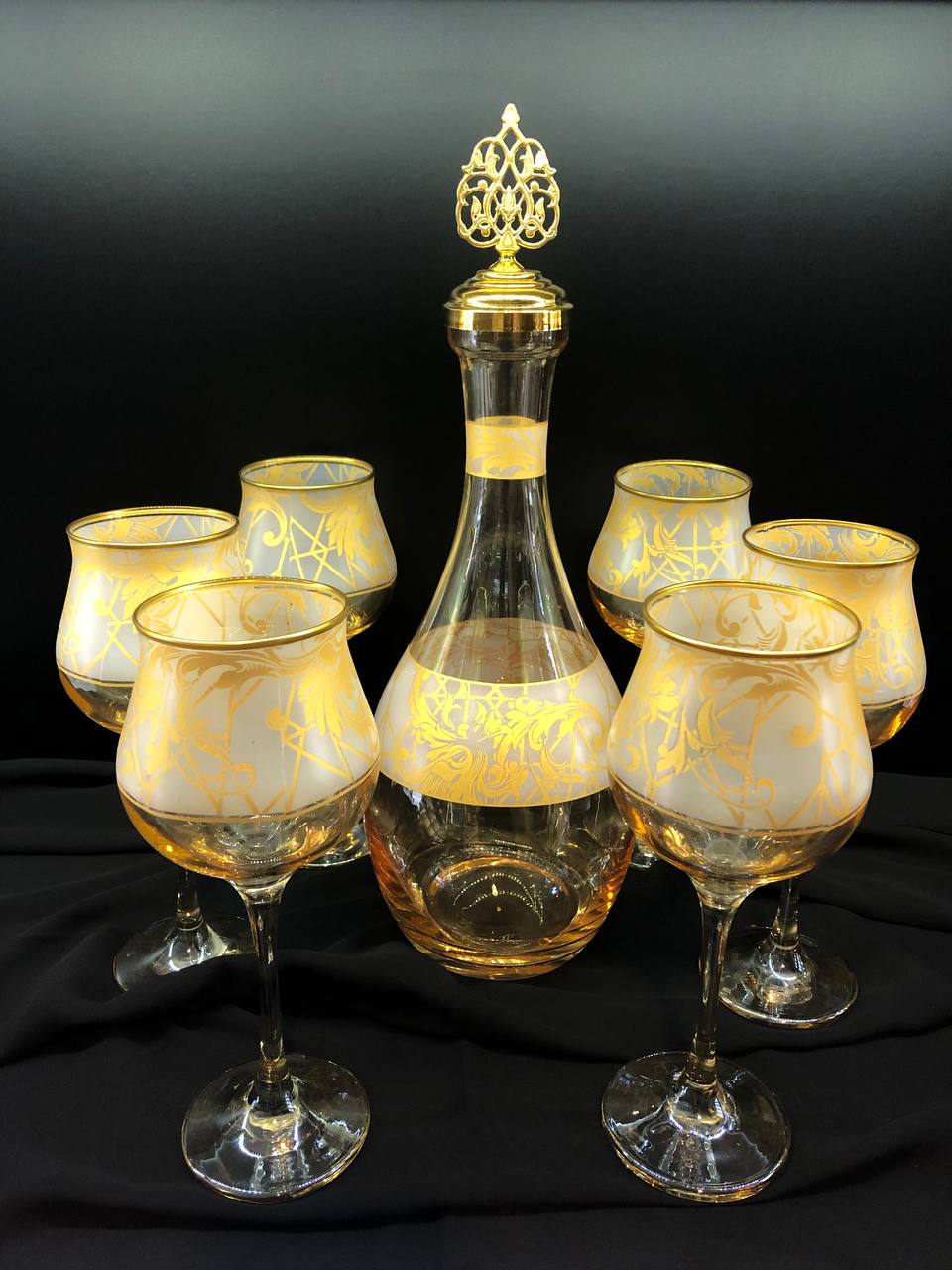7 Parça Şişe Takımı Mat Saraylı Ağız Soğuk Boya