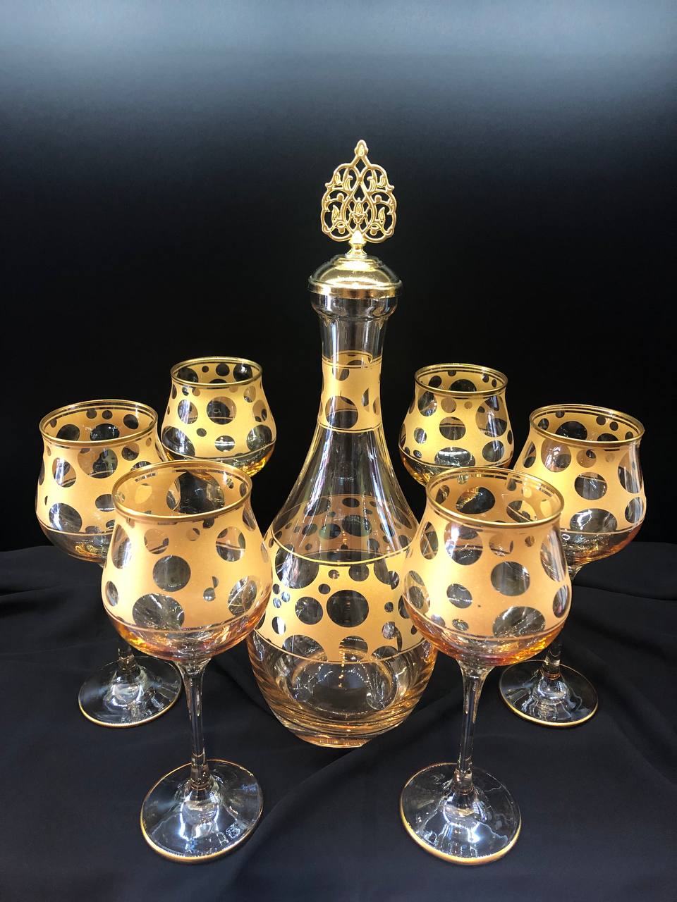 7 Parça Şişe Takımı Sarı Yuvarlaklı Ağız Soğuk Boya