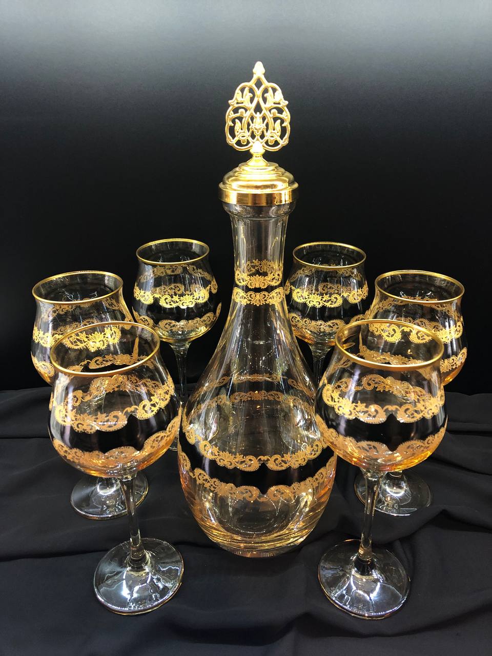7 Parça Şişe Takımı Siyah Dantel Ağız Soğuk Boya